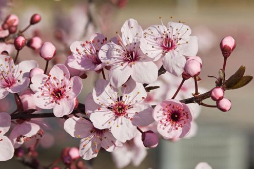 Fig della famiglia Rosacee Prunoidee coltivato per i suoi frutti pesche e talvolta anche come pianta ornamentale per i suoi fiori di color roseo chiaro o cupo. Ho regalato a mia madre un mazzo di fiori per il suo compleanno. Si dice che alla sinistra si ponessero dei fiori di pesco rosso scarlatto e alla destra fiori di pesco di colore rosso e bianco.