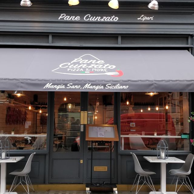 Pane Cunzato - pizza. Pane Cunzato says Bringing Sicilian and Aeolian flavours to London we serve a delicious range of traditional dishes from our land of origin including Pane Cunzato Pizza more. Very limited menu its essentially a cafe.