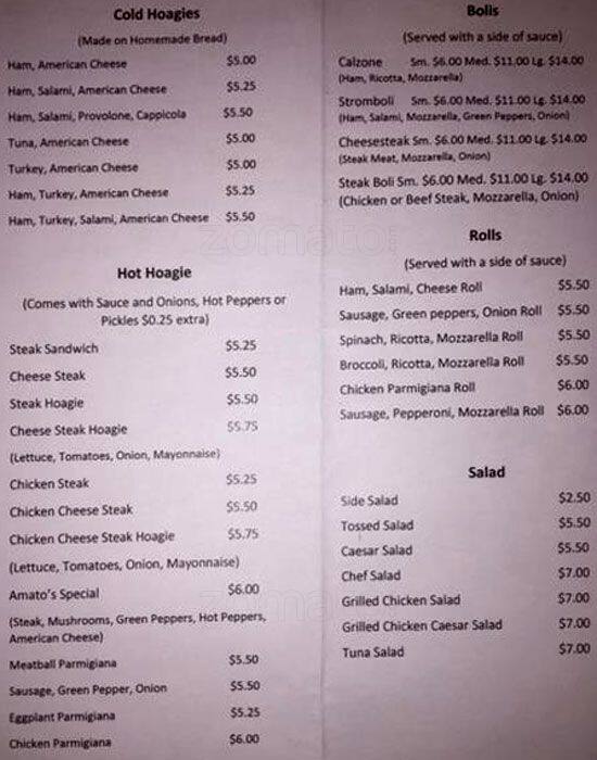 Amato S Pizza Family Restaurant Menu In Northumberland Pennsylvania Usa